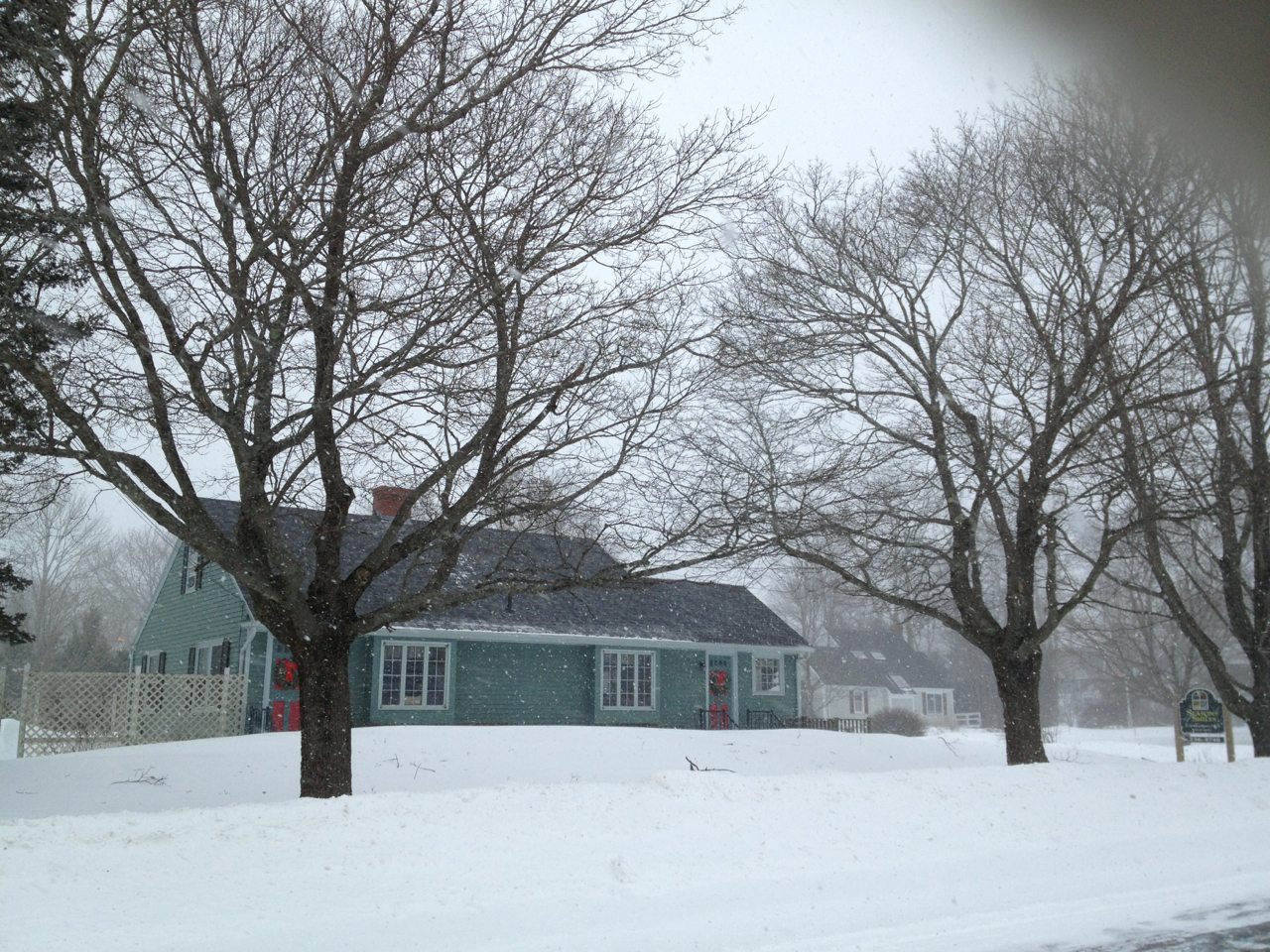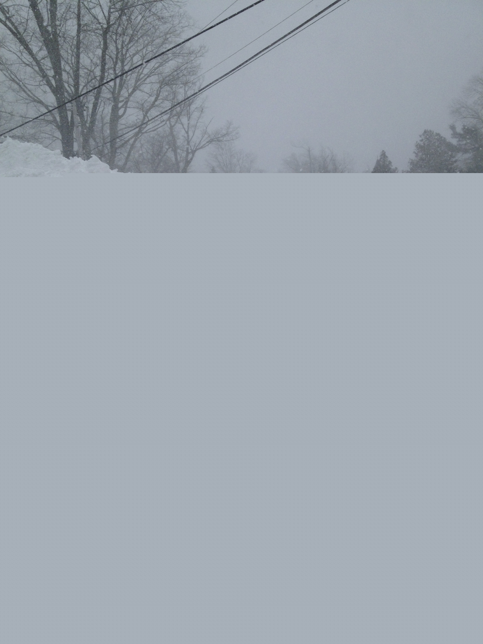 Rockland Maine in the middle of the blizzard. The sidewalks were closed, so we were sharing the road with pedestrians. I think they were afraid of Lanita’s driving.