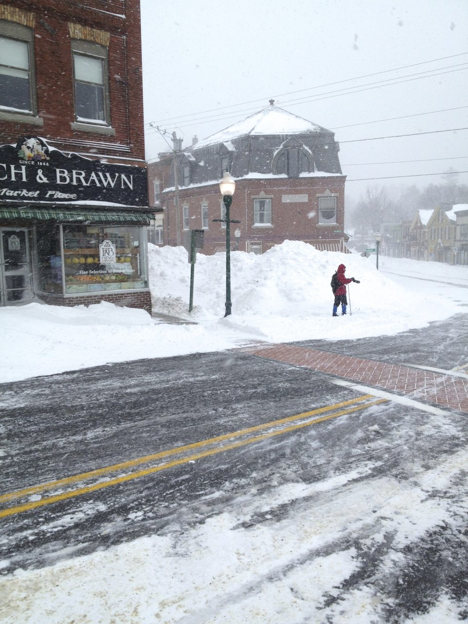Cross country skiers are out in downtown Camden Maine. Nemo, Blizzard