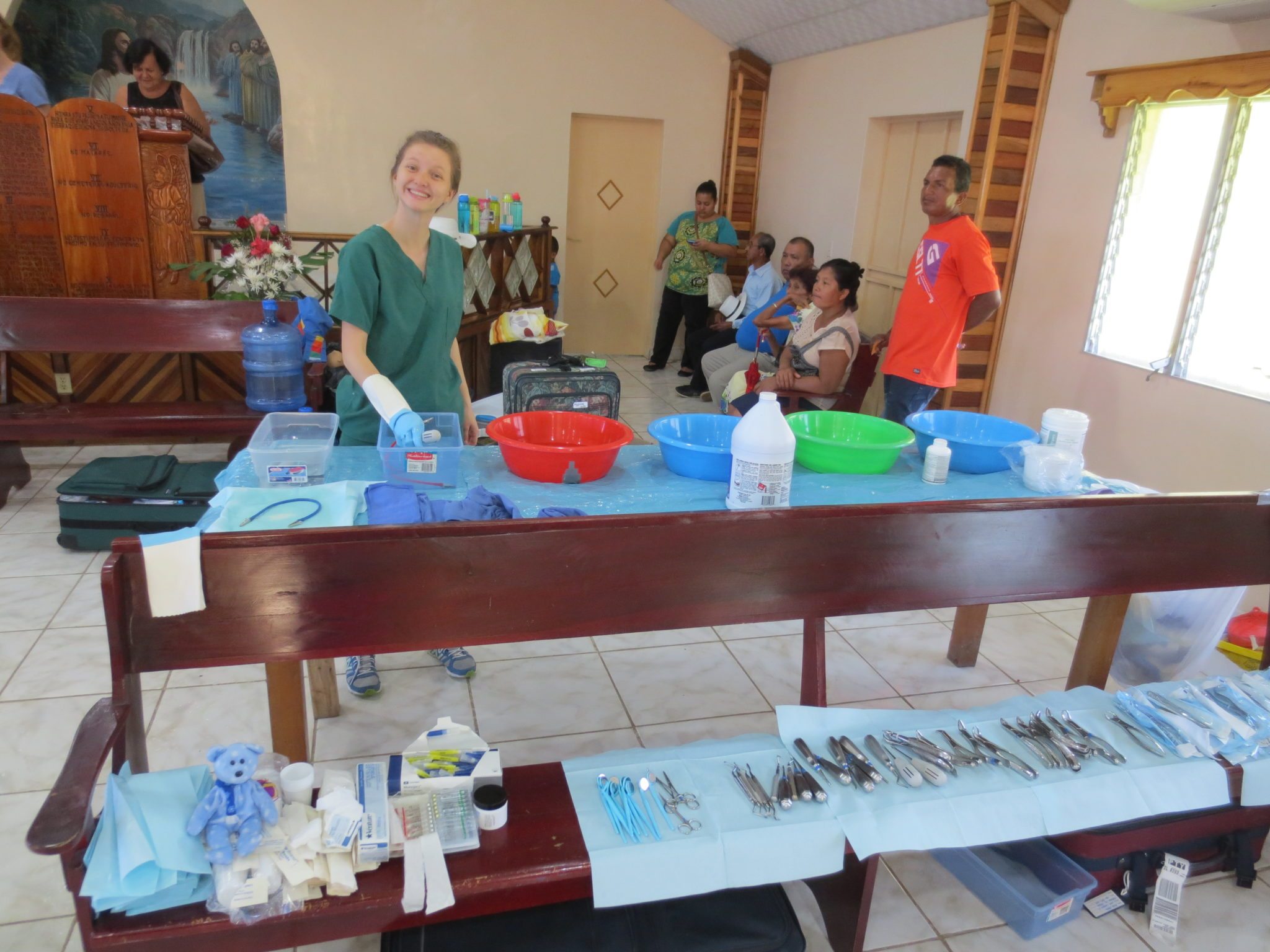 Breakfast by 6:30 am, worship at 7:30 on the bus to the work site by 8:00, with every anticipated dental/medical supplies packed and ready to go to a different site every day.